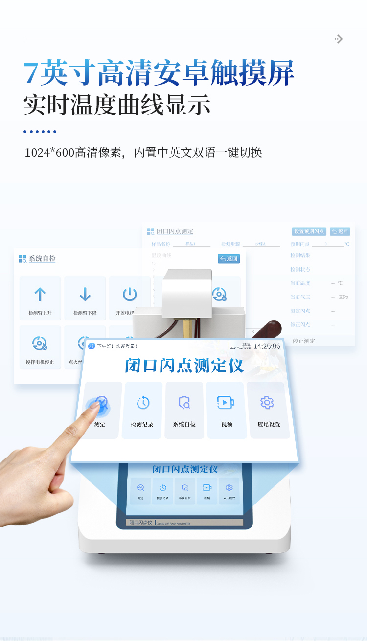 全自动开口闪点和燃点测定仪主要用于石油产品和其他易燃液体在特定条件下,与空气混合后遇火源发生闪火和燃烧的最低温度的仪器。