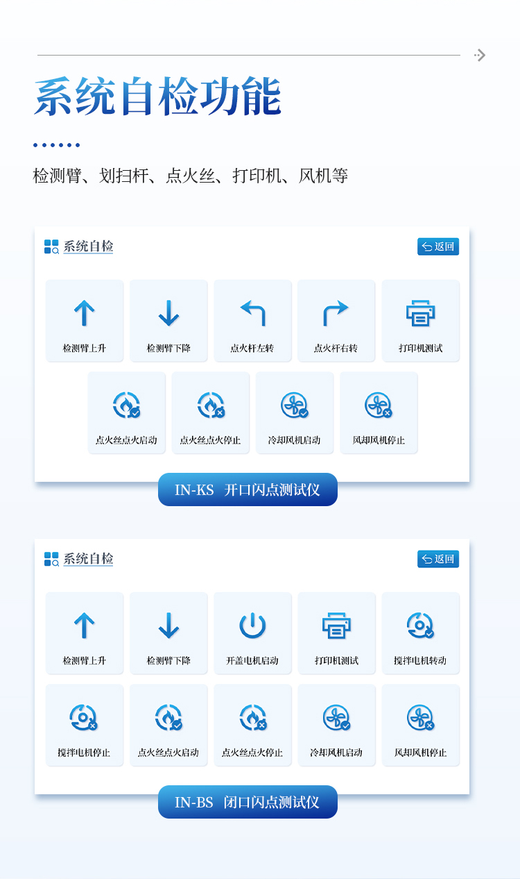 自检功能 检测臂、划扫杆、点火丝、打印机、风机等