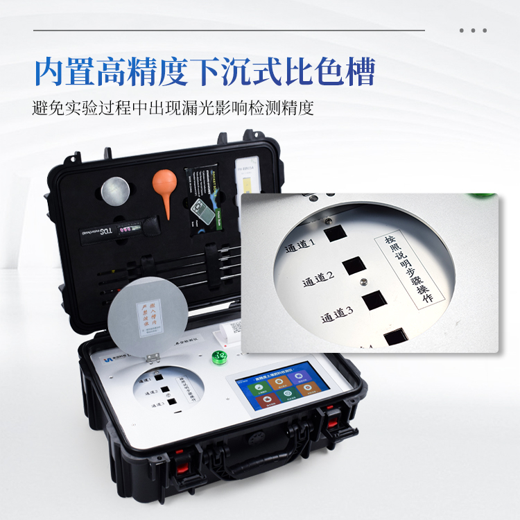 ★18.比色槽内置于下沉式密闭舱内,直径为15.7cm圆形遮光板全面覆盖遮光,避免实验过程中出现漏光影响检测精度,保证检测结果准确。