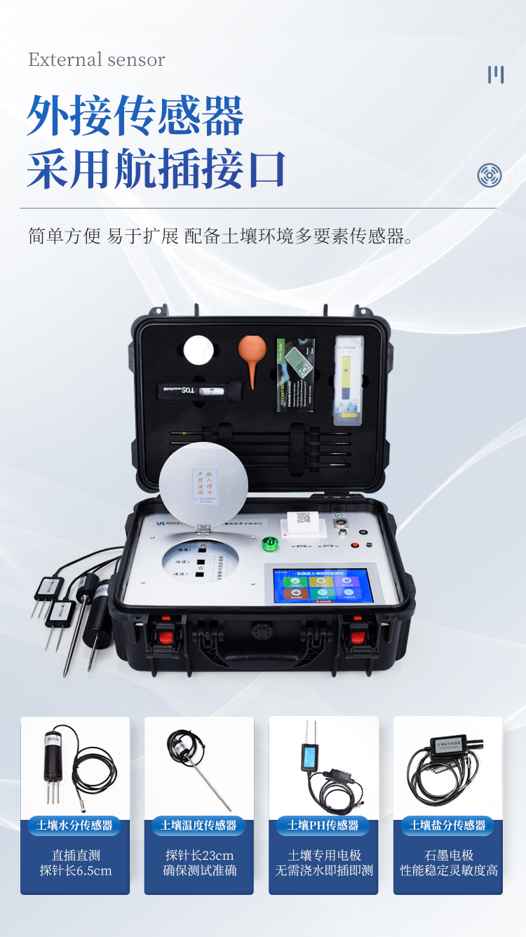简要描述: 高精度土壤养分快速检测仪可以快速检测土壤中的氮、磷、钾等养分含量,提供土壤肥力水平的相关数据。这些数据对于种植者、农民和农业科学家来说是至关重要的,它们可以帮助人们了解土壤中养分的含量和分布情况,从而更好地制定种植计划和施肥策略。