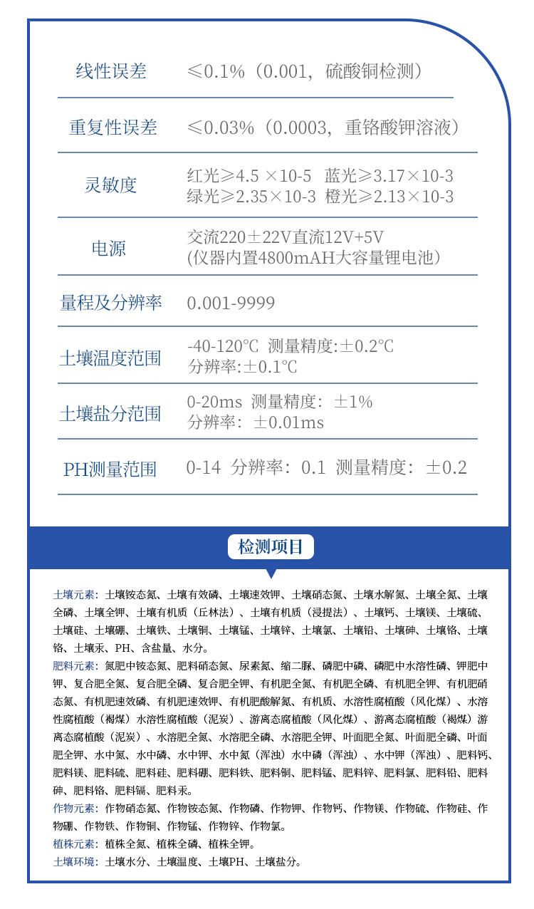 | 一、高精度土壤养分快速检测仪检测项目 |