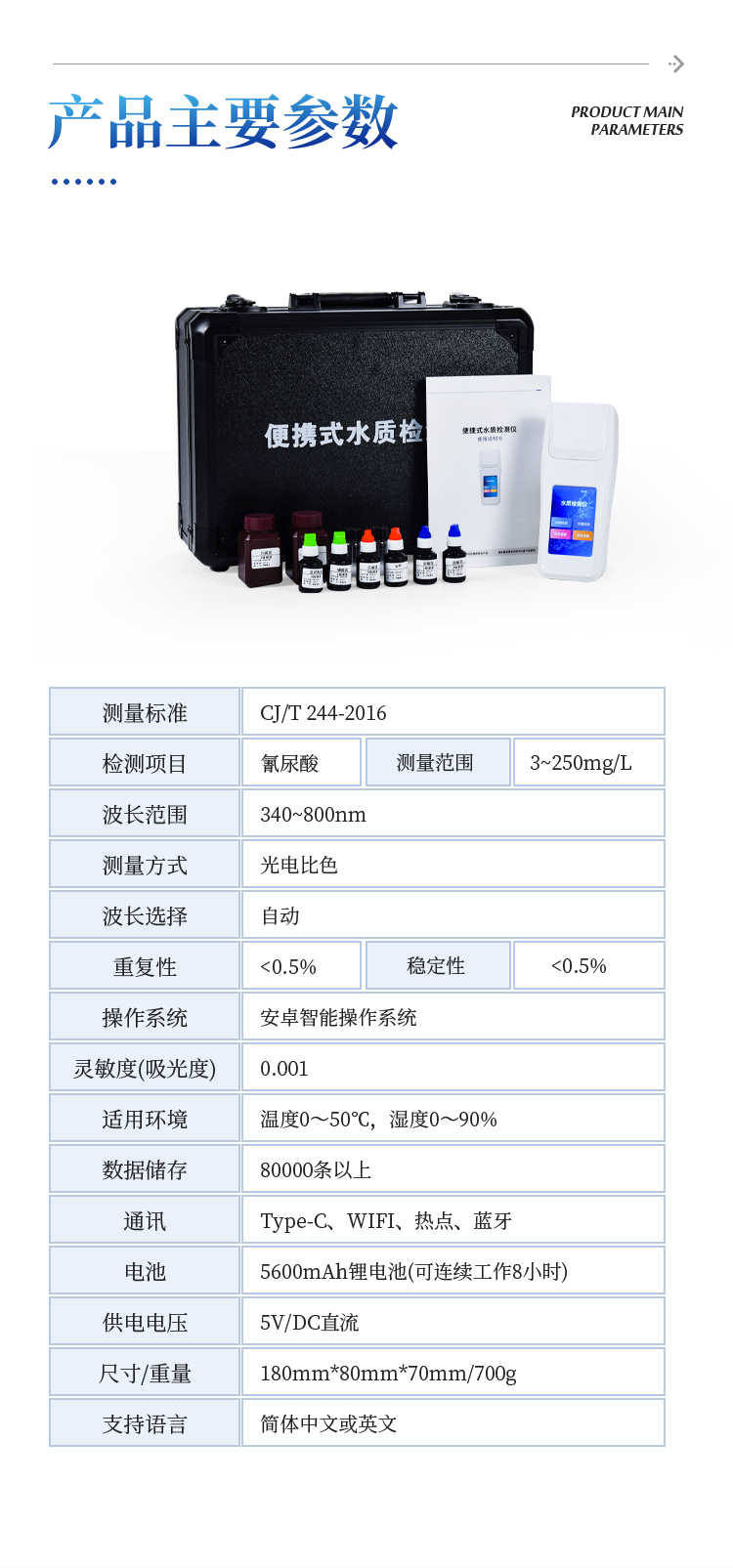快速检测水体中氰尿酸检测指标;