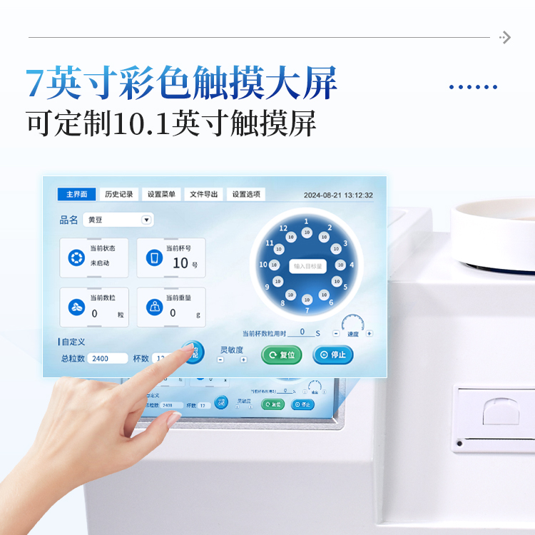 11、内置减速程序:在每个料杯接近设定籽粒数量后会自动进行减速精数,防止物料惯性过冲影响精度。