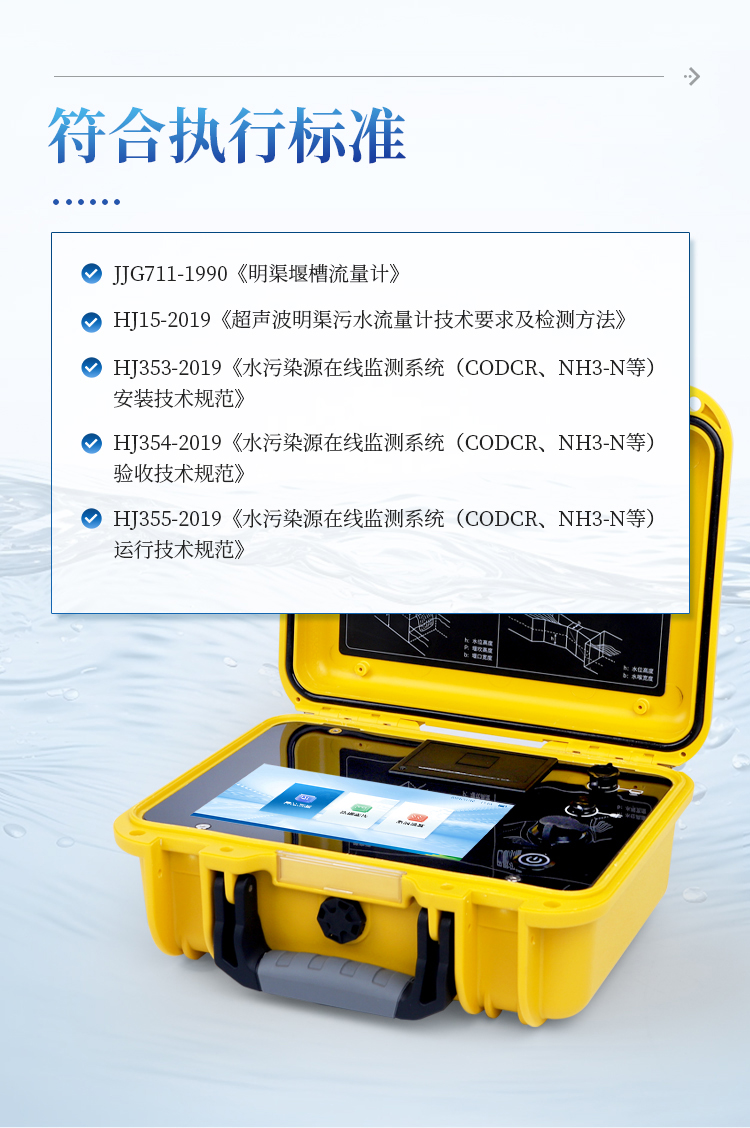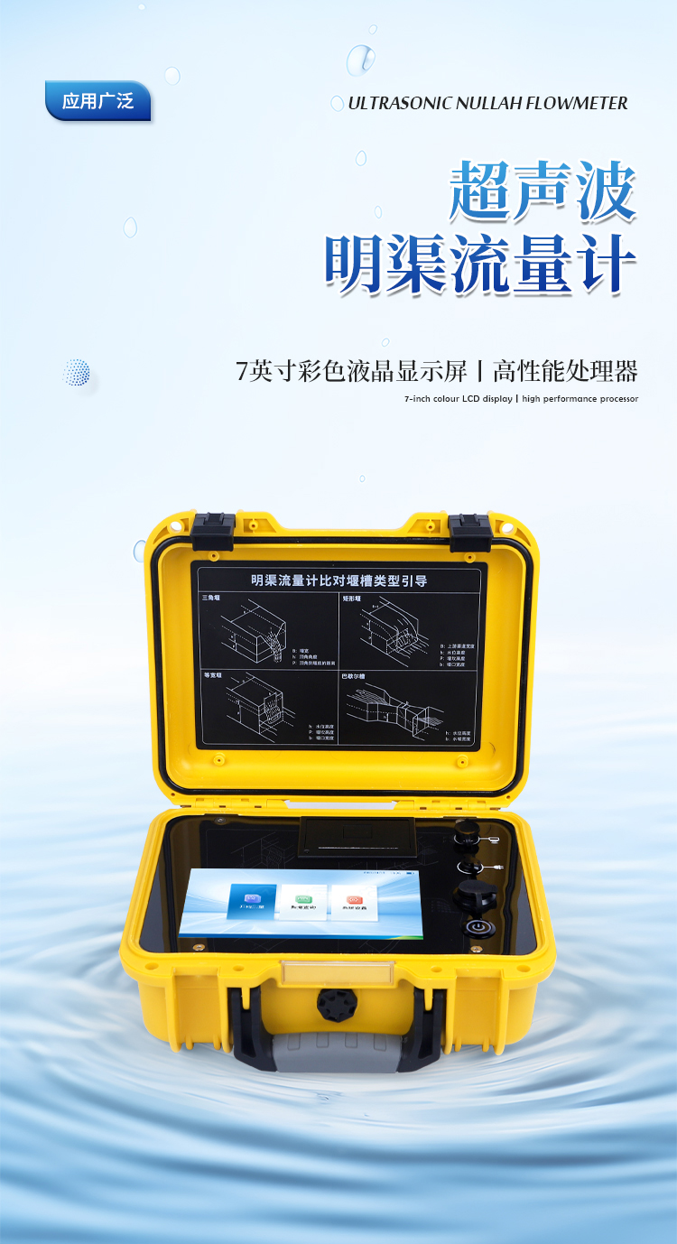 便携式明渠流量计是专为水文监测、江河流量监测、农业灌溉及市政给排水等行业设计的一种高精度测量仪表,它采用超声波技术和特殊的微功耗设计方案,结合全数字信号处理技术,确保了测量的稳定性与可靠性。该设备具有广泛的测量范围和较高的测量精度,支持实时数据显示、数据记录、导出及打印等功能,操作简便且准确度高,非常适合于需要频繁移动进行测量的场合。同时,它依据JJG711-1990检定规程,并参照HJ353-2019、HJ354-2019、HJ355-2019以及HJ15-2019中对流量监测单元的相关要求进行比对验收,确保了其在水利工程、环境监测、农业灌溉等领域的适用性和准确性。