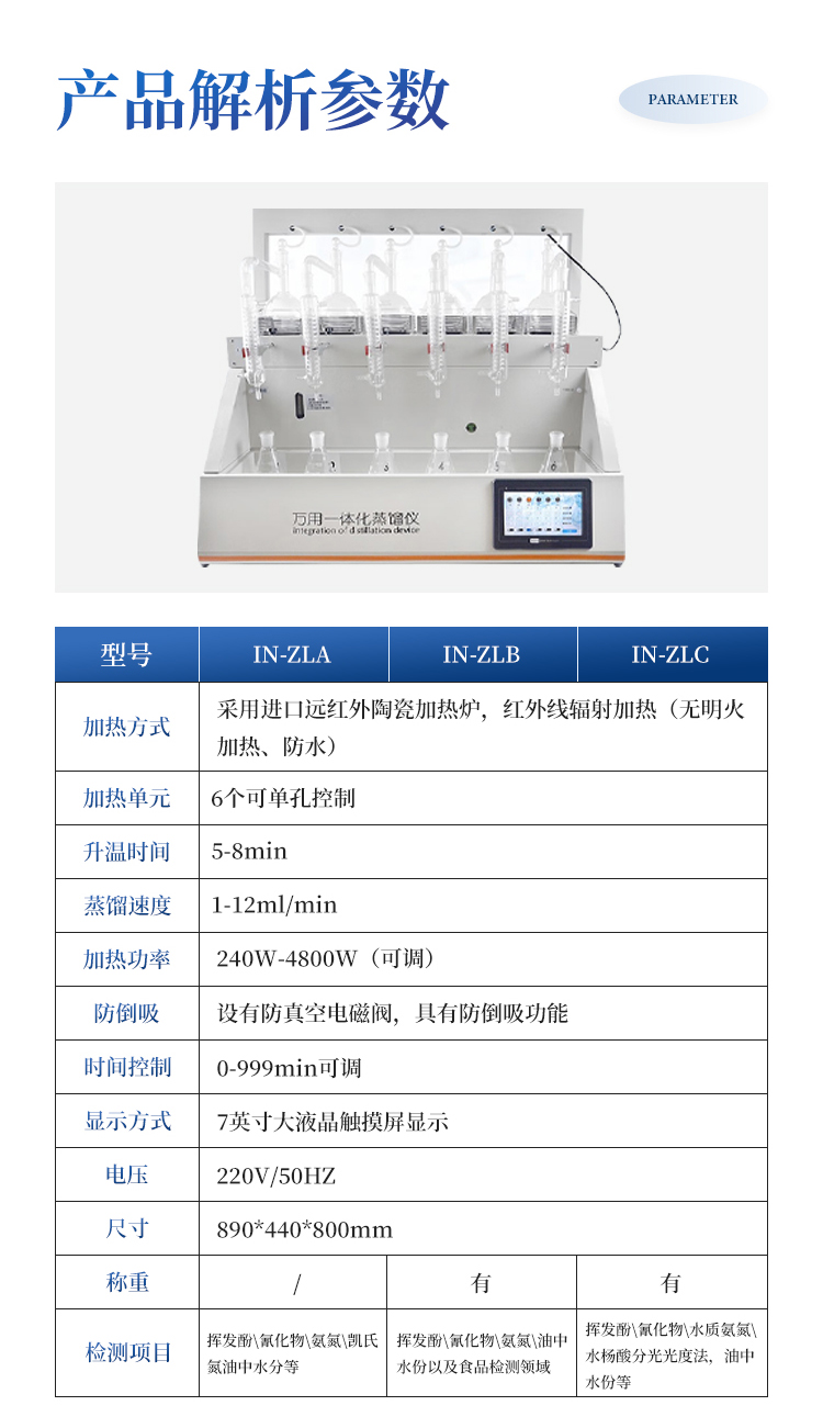 简要描述: 二氧化硫蒸馏仪IN-ZL6S在严格遵循药典要求的基础上,整合加热,蒸馏,水循环及氮吹等功能为一体,可同时提供3-6个样品(空白样,平行样)的处理,从而极大的提高了检测数据的精度和减少了工作时间。