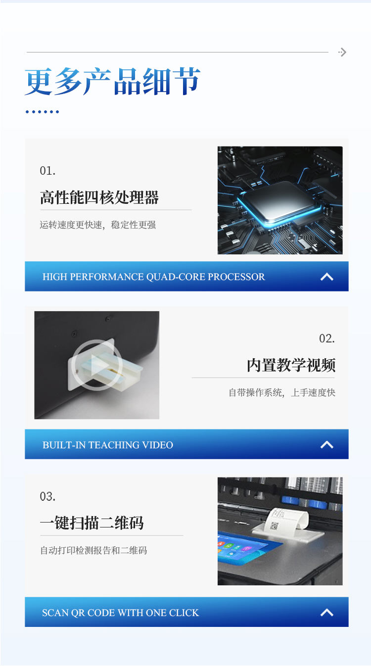 3、新一代高速热敏打印机,检测完成可自动打印和批量打印检测报告和二维码。