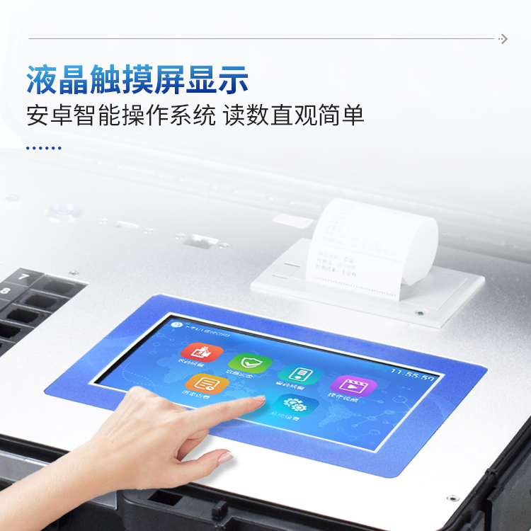 2、显示方式:7英寸液晶触摸屏显示,人性化中文操作界面,读数直观、简单。