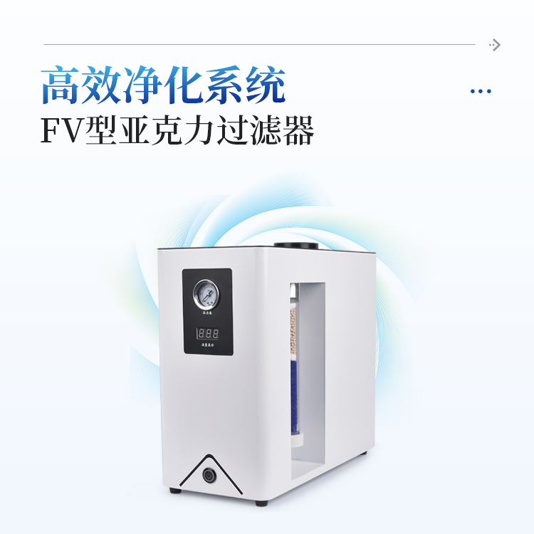 4、体积小,双支FV型亚克力过滤器,耐压高,不会因工作环境及腐蚀气体的影响,导致过滤管变形,开裂而产生漏气现象,可持久使用,一劳永逸。