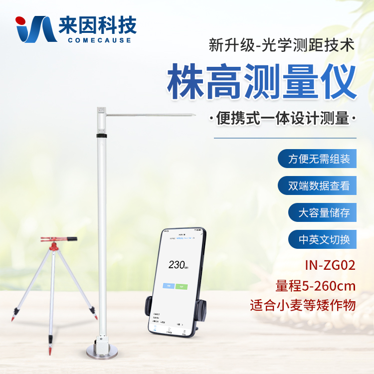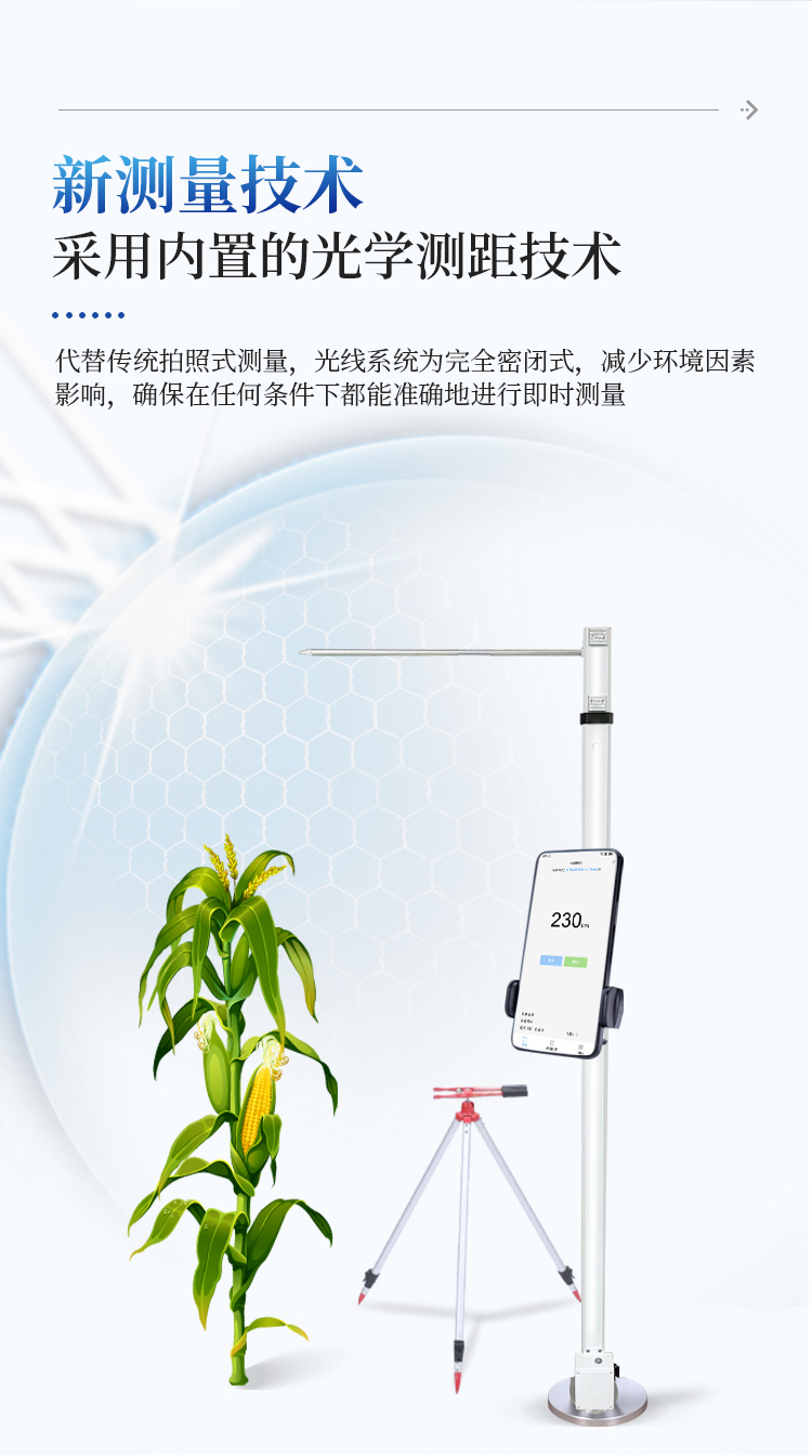 小麦株高测量仪是专为农业领域设计的一种便携式、快速响应的农作物高度测量工具。采用内置光学测距技术,并通过内置算法进行现场分析,能够实时获取高度数据。