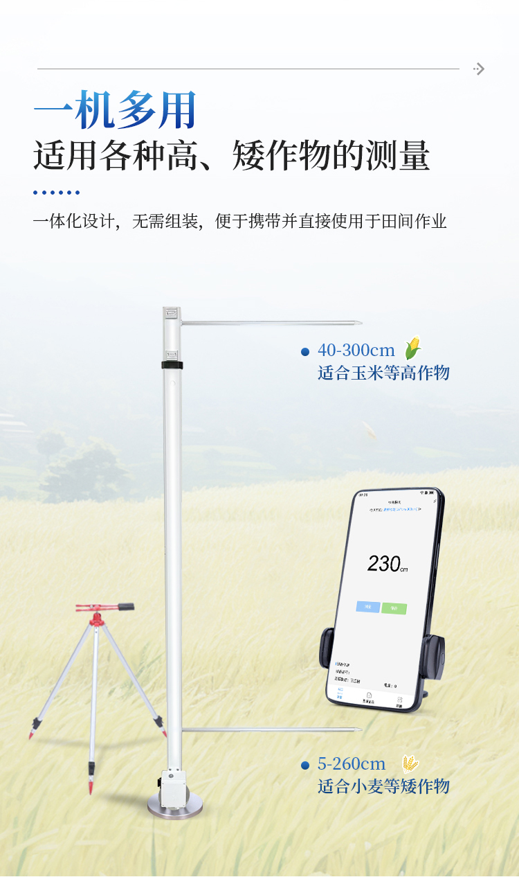 2、适用范围广-可同时适用各种高、矮作物的测量,无需更换设备,一机多用。