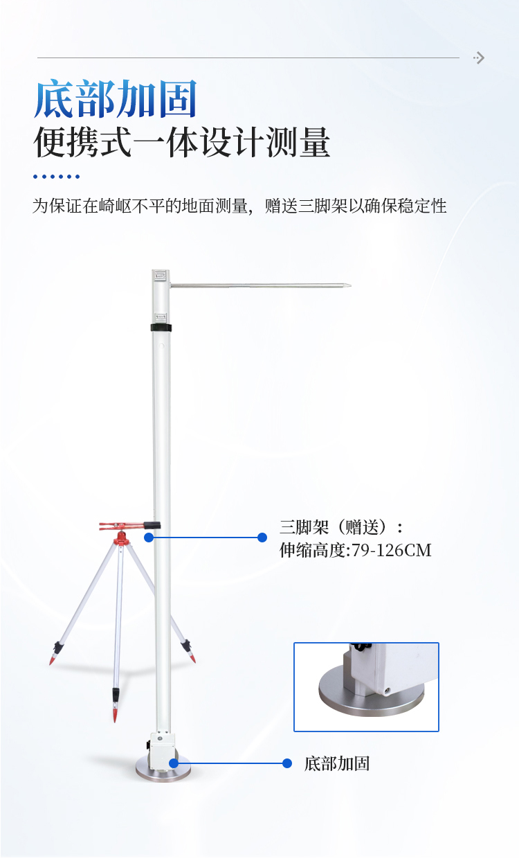 6、提高准确性 - 测量杆配备有水平仪及稳固支架,保证了测量过程中的稳定性和精确度。