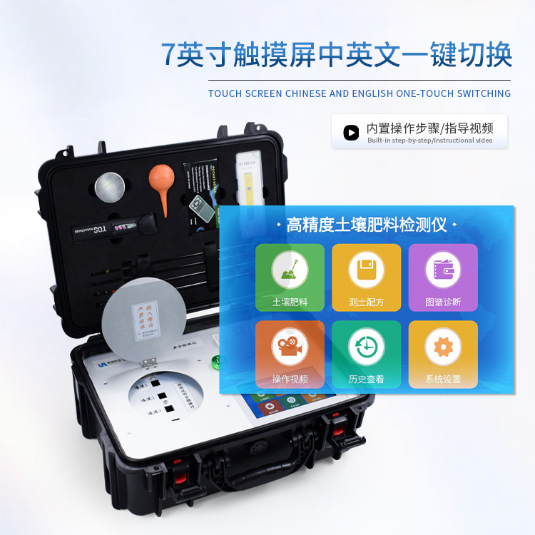 检测速度:在正常熟练程度下,测土壤铵态氮、磷、钾三项要20分钟,测肥料氮、磷、钾三项需50分钟左右,微量元素单项检测需20分钟左右(含样品前处理及药剂准备,仪器部分即检即测)。