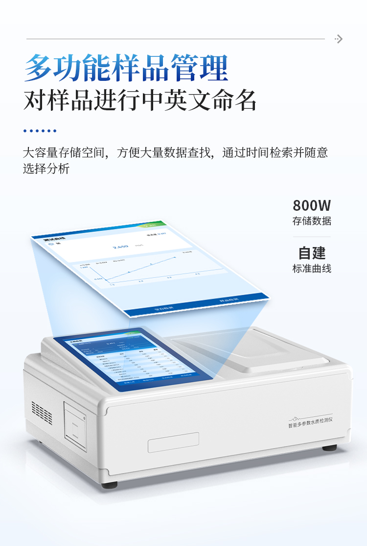云平台:仪器带有监管平台,连接有线/无线网络,检测结果直接传输至环境安全监管平台;