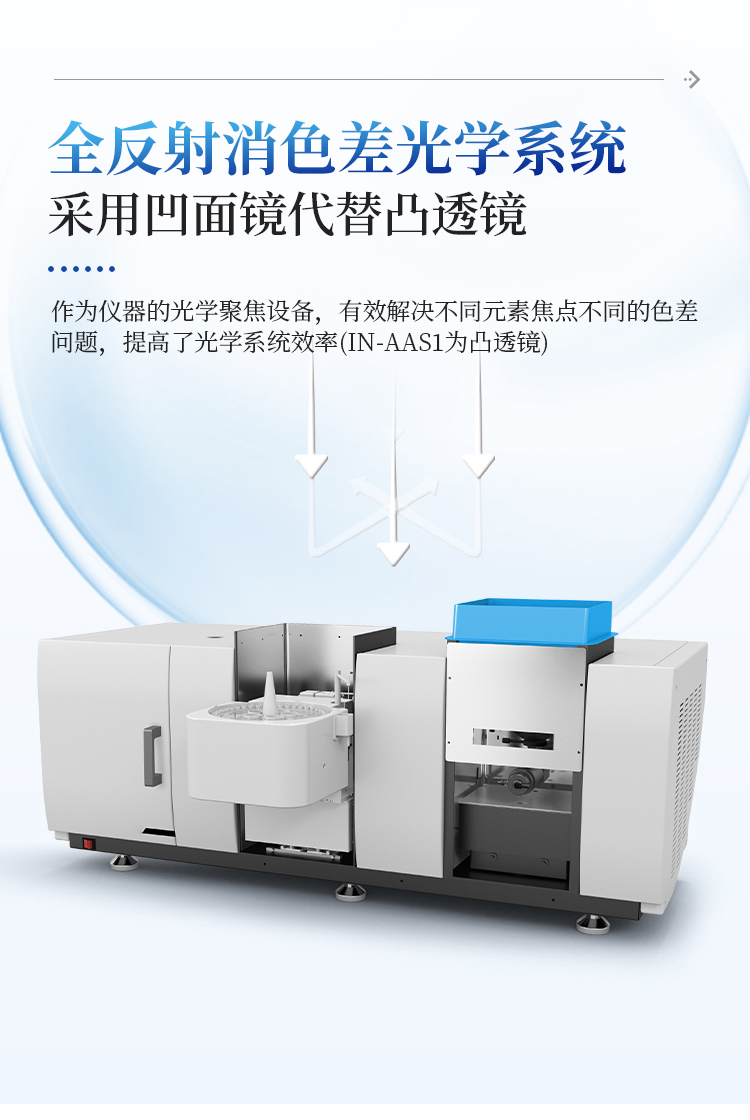单石墨炉原子吸收分光光度计采用凹面镜代替凸透镜,有效解决了不同元素聚焦点不同产生的色差问题,提高了光学转换效率。