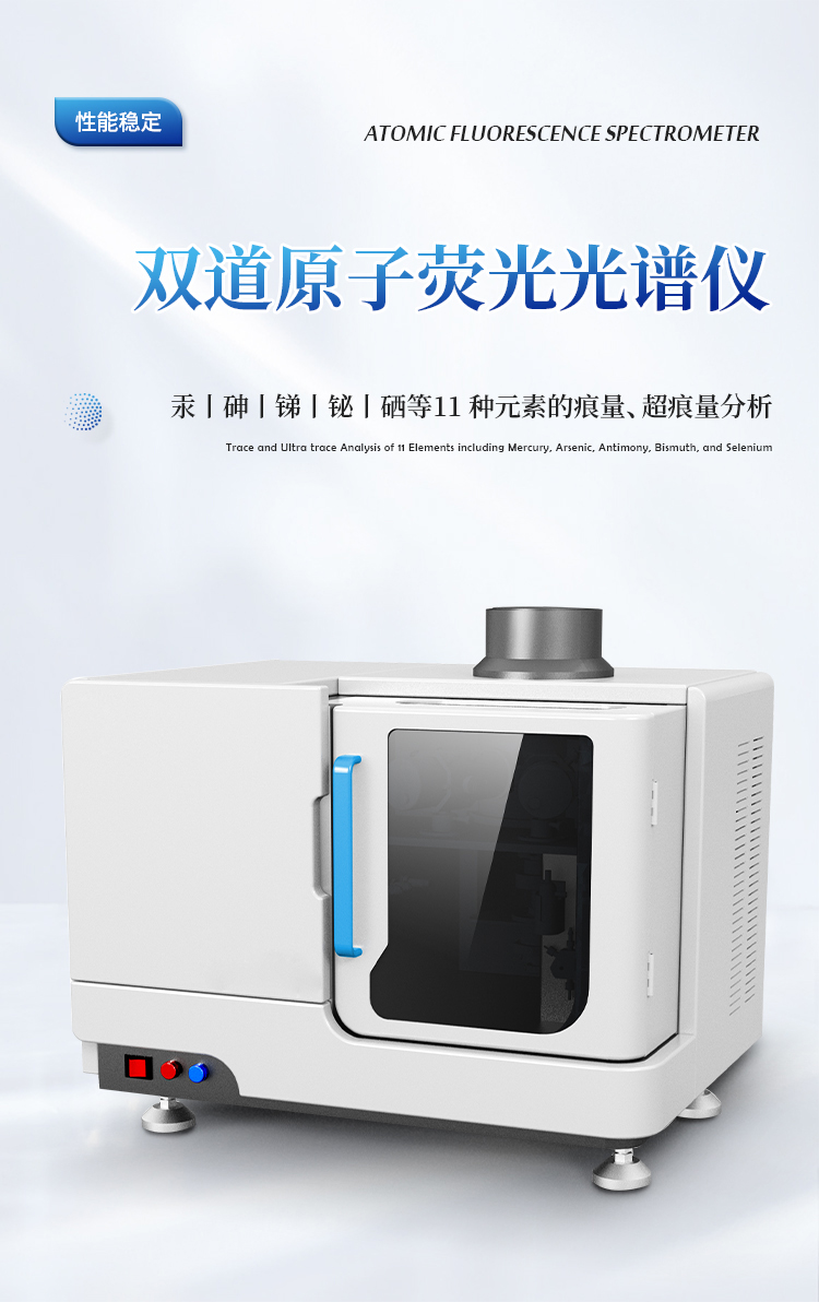 双道原子荧光光谱仪广泛应用于汞(Hg)、砷(As)、锑(Sb)、铋(Bi)、硒(Se)、碲(Te)、镉(Cd)、锗(Ge)、铅(Pb)、锡(Sn)、锌(Zn)等11 种元素的痕量、超痕量分析,体积小巧,性能稳定,操作简单。