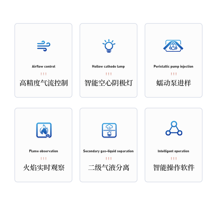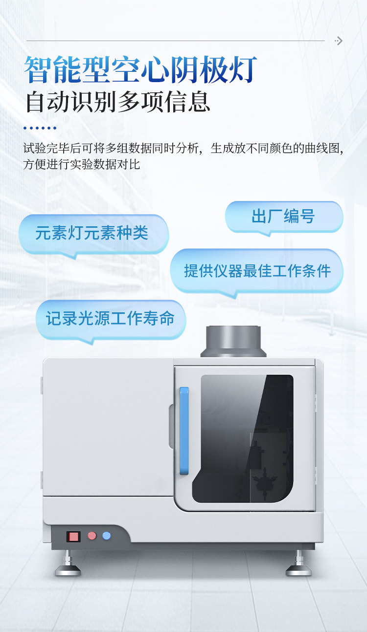 仪器配备智能型高性能空心阴极灯,仪器能够自动识别元素灯元素种类、出厂编号、记录光源工作寿命、提供仪器最佳工作条件等。