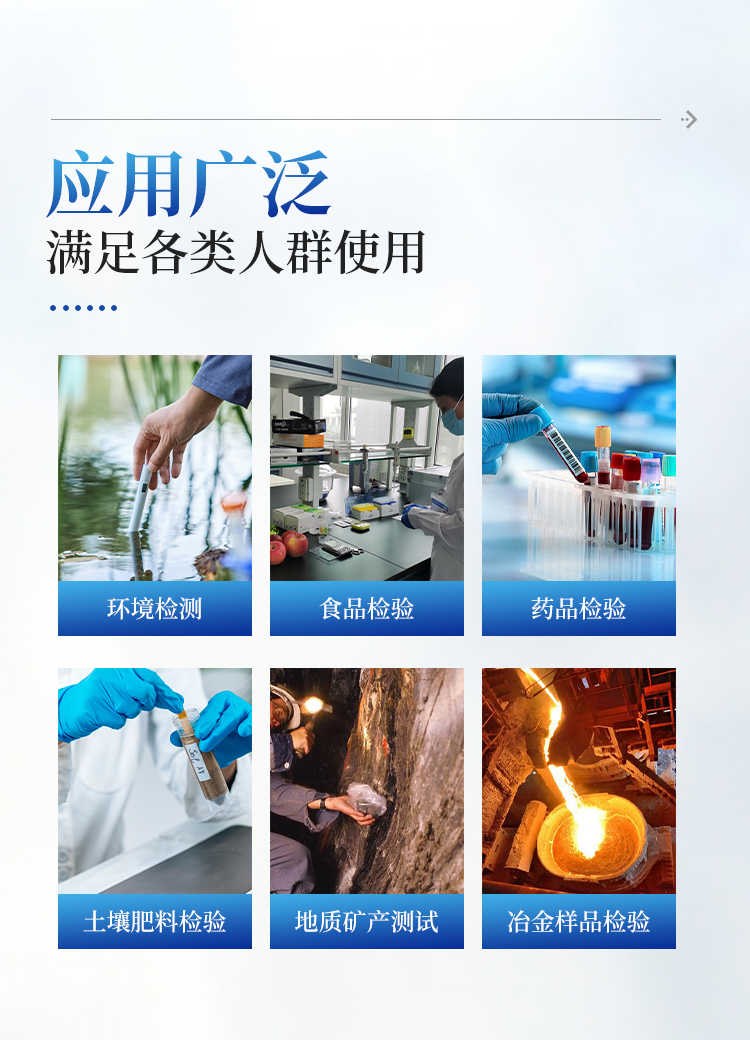 原子荧光光谱仪的应用领域较为广泛,主要测试样品中 11 种超痕量元素的含量,最低检测下限可达千亿分之一级。应用领域包括水质、土壤、大气等样环境检测项目、食品检验、检验检疫、药品检验、化妆品检验、土壤饲料肥料检验、地质矿产测试、冶金样品检验、教学研究等。