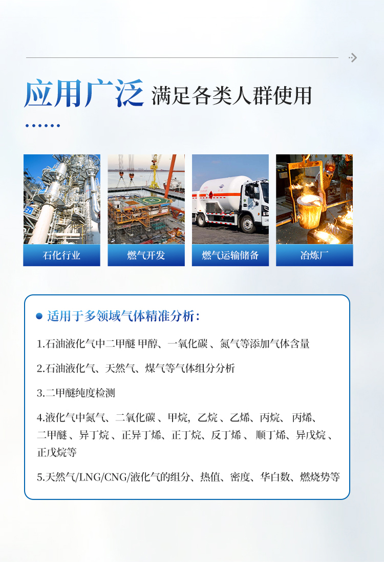 LNGCNG 加气站、油田气、煤层气、矿井气、页岩气、燃气管道运输公司、燃气运输公司、燃气储备站、煤改气企业、LNG点供、燃气具生产企业、石油炼化、焦化厂、冶炼厂和供气站等众多行业。