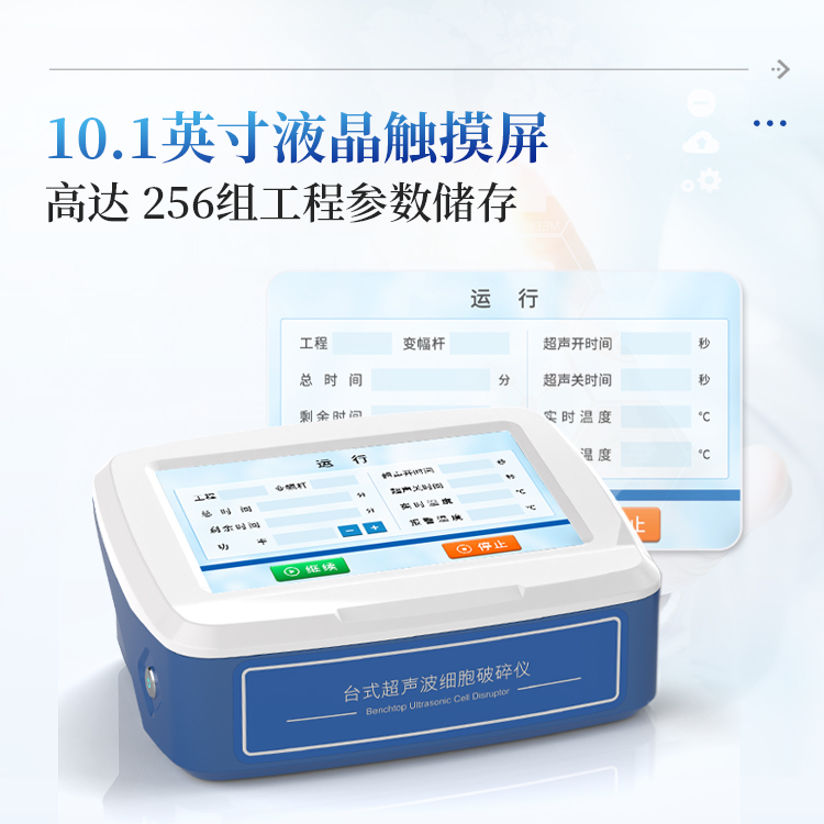 自研自产的超声波细胞破碎仪功能齐全、外观新颖、性能可靠。仪器采用大屏液晶显示;中央微机集中控制,超声输出、间隙时间、超声功率,样品温度监测显示,频率自动跟踪,故障自动报警等功能。适用于生物化学、微生物学、药物化学、表面化学、物理学、动物学、农学、医学、制药等领域的教学、科研及生产。