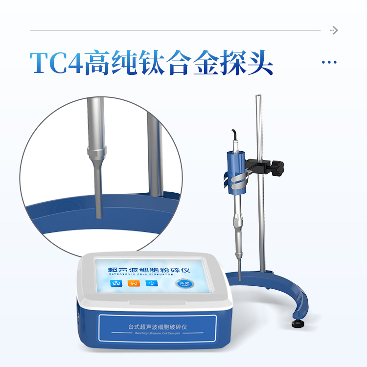 利用超声波在液体中的分散效应,使液体产生空化的作用,从而使液体中的固体颗粒或细胞组织破碎.超声波细胞粉碎机由超声波发生器和换能器二大部分组成。超声波发生器将市电转变成20-25KHz交变电能供给换能器。锆钛酸钡压电振子是换能器的心脏,它随交变电压以20-25KHz频率作伸缩弹性形变,换能器随之作纵向机械振动。振动波通过浸入在生物溶液中的钛合金变幅杆产生空化效应,激发介质里的生物微粒剧烈振动。