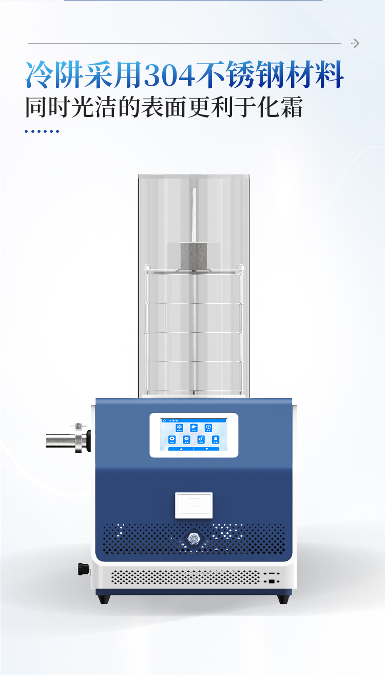 (2) 钟罩采用高度透明材质打造,耐腐蚀、不易碎,便于观察样品的冻干过程。