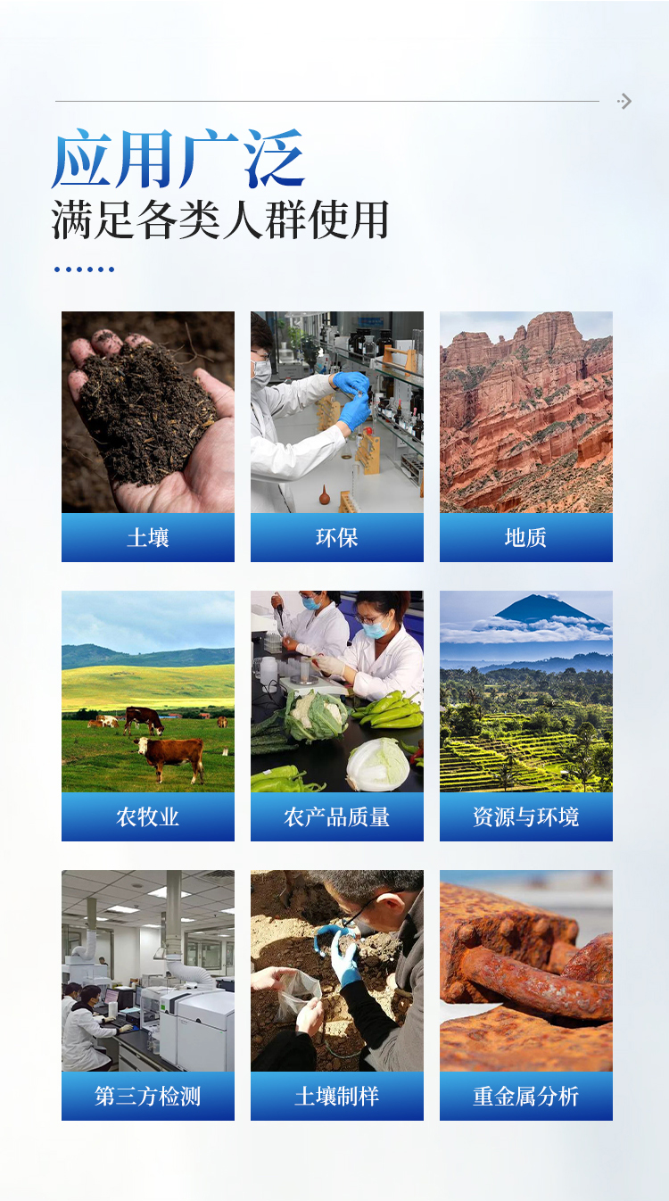 应用领域:土壤、地质、环保、第三方检测、农牧业、农产品质量、资源与环境等,土壤制样、重金属分析