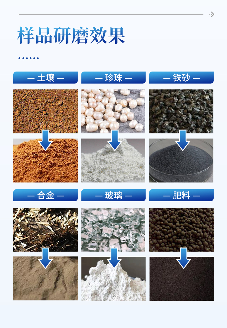 应用样品特征:脆性的,纤维性的,中低硬度的,干磨或湿磨