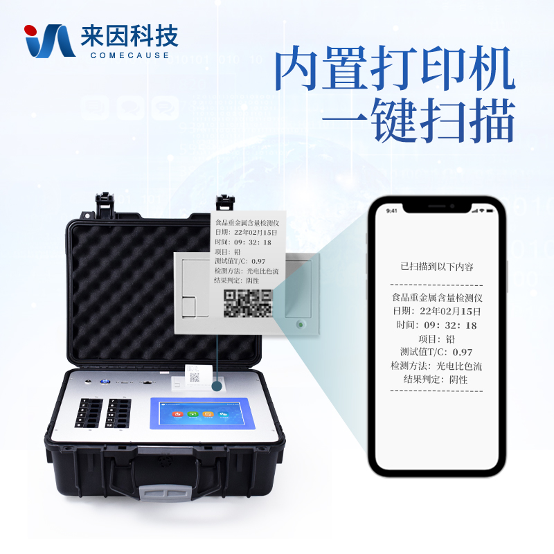 4、一体化便携式快检设备,满足现场及流动检测使用需求,能够在同一软件下实现所有重金属检测项目的检测,并可通过同一窗口直观显示检测结果。