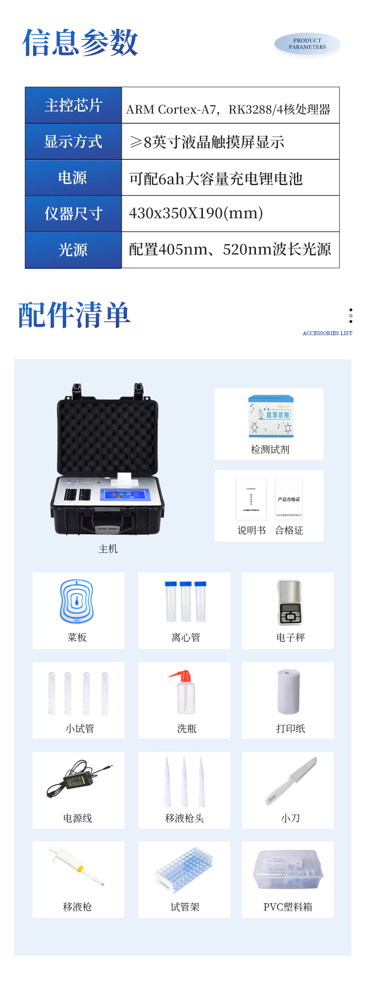 9、一体化便携式快检设备,满足现场及流动检测使用需求,能够在同一软件下实现所有检测项目的检测,并可通过同一窗口直观显示检测结果。