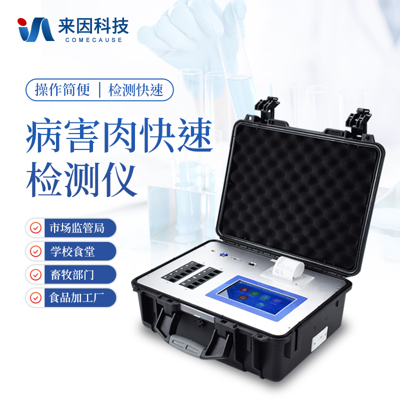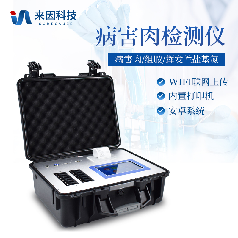 可快速检测病害肉、组胺、挥发性盐基氮,仪器预留其他项目检测程序和端口,根据日后需求可方便的自主增加检测项目。