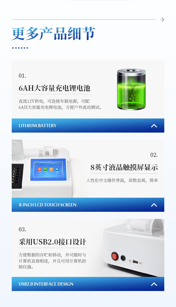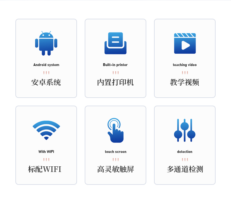 1、安卓智能操作系统,采用更加高效和人性化操作,仪器具有网线连接、wifi联网上传、GPRS无线远传功能,快速上传数据。