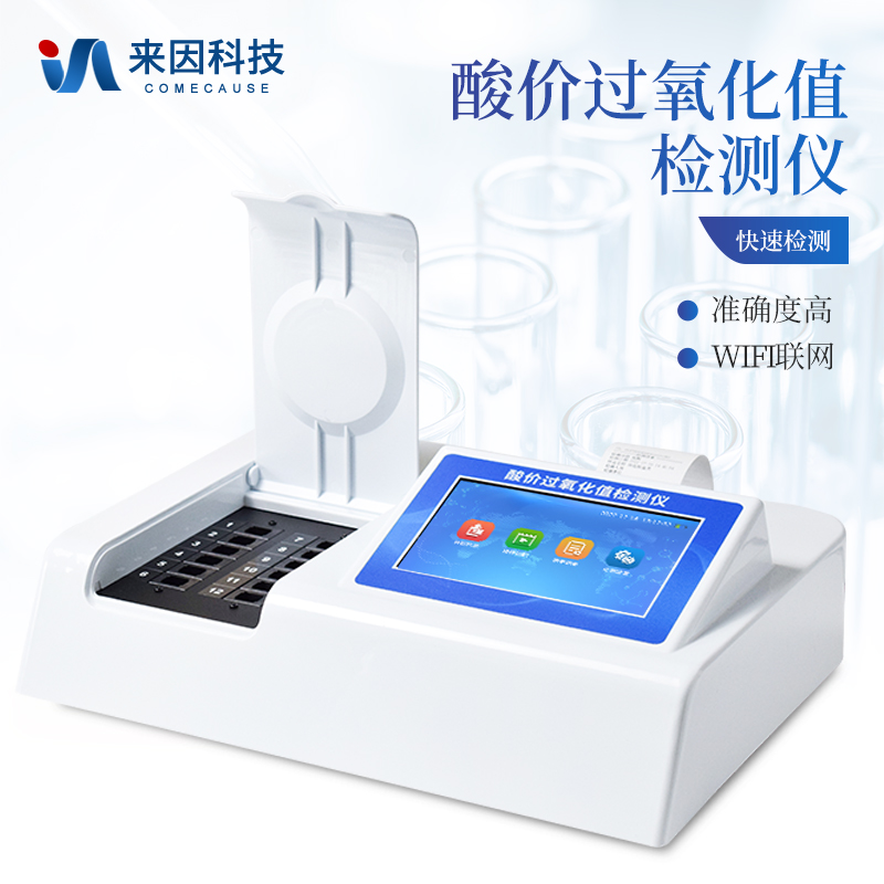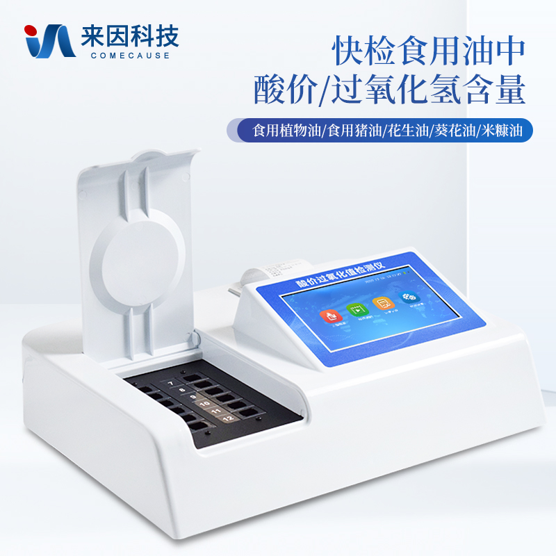食用油酸价过氧化值检测仪为集成化油品快速检测分析设备,能够快速检测食用植物油、食用猪油、花生油、葵花油、米糠油、食品、肉制品中的酸价、过氧化值含量;通过检测可确定植物油是否符合国家标准或是否为酸败油、劣质油、地沟油等。仪器预留其他项目检测程序和端口,根据日后需求可方便的自主增加检测项目。日后可升级为检测水产品、面制品的综合类型仪器。