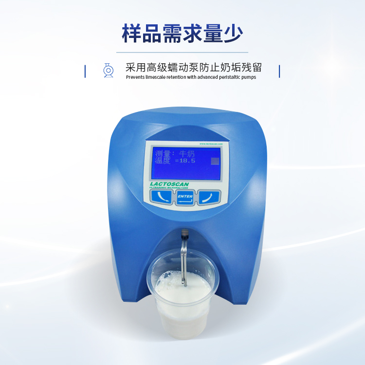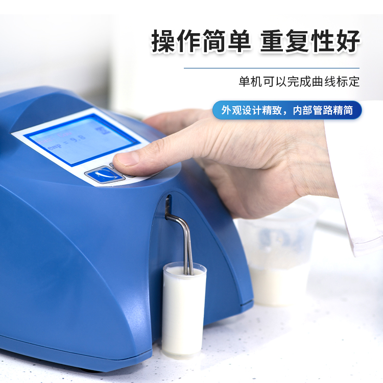 简要描述: 乳成分分析仪是专门用于对液态乳制品进行理化方面的多指标分析和检测的仪器设备。它们具有多种功能和参数测量选项,以评估乳制品的质量和营养价值。该仪器主要用于乳制品中脂肪,蛋白质、乳糖、非脂固形物、密度、掺水率、冰点、灰份、温度、pH值、电导率的测定,适用于牛奶、羊奶、UHT奶等分析,是现代牧场、鲜奶收购站和中小型乳品企业监控乳品质量极为理想的仪器。