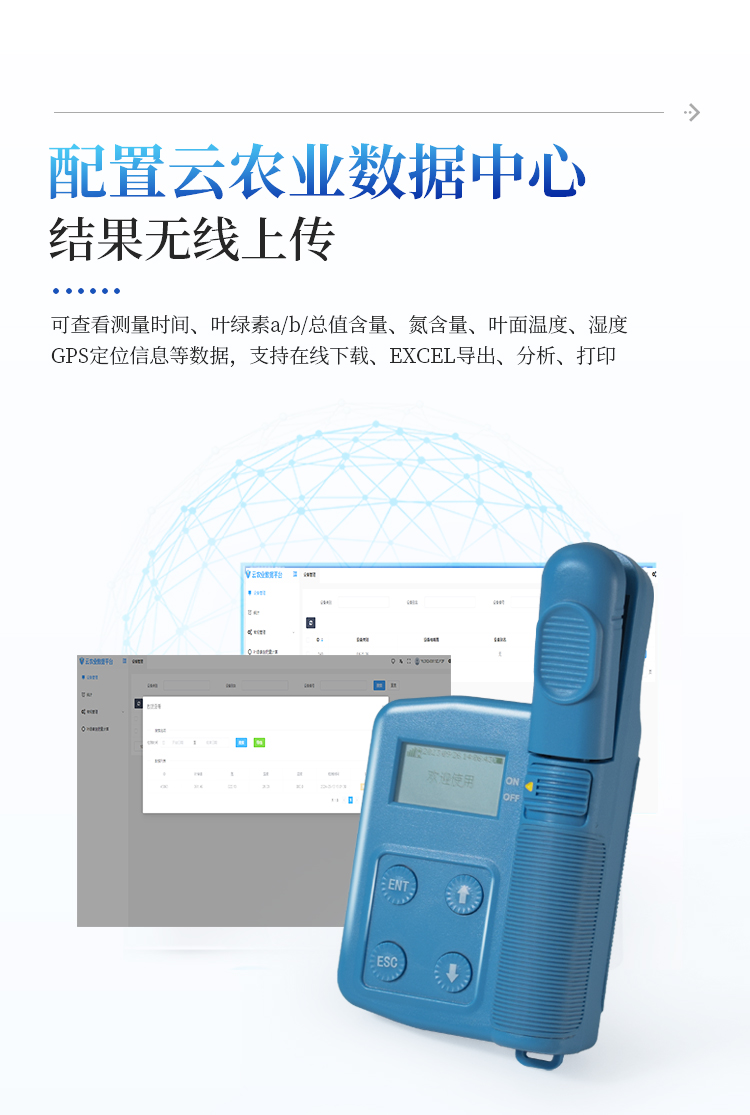 8.仪器内置4G无线传输模块(赠送两年数据流量),支持野外环境实时上传数据,检测结果可直接传至专属云农业数据中心,分配企业专属云农业数据中心账户,该账户中心可查看不同检测人员的上传数据。