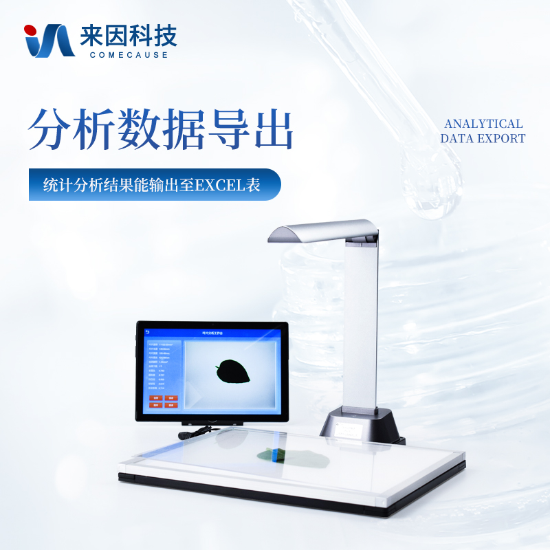云平台数据传输:数据可上传至云平台,可按照任意时间段和叶片类别检索历史数据,可查看测量时间叶片面积、周长,最大叶长、最大叶宽,矩形度,凹凸比,球状性,形状系数,虫洞数量,虫洞面积等数据,可对不同参数做柱状图分析,支持数据以EXCEL表格形式导出,可根据选择的时间段展示数据、支持数据以表格、柱状图等分析、在线下载。