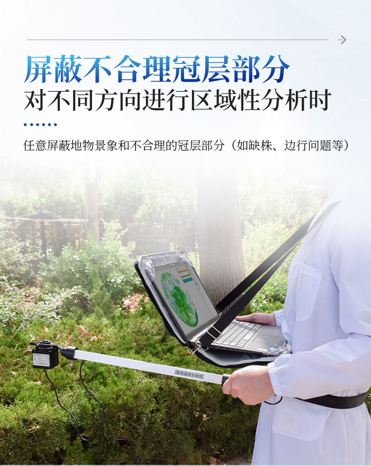 可屏蔽不合理冠层部分:对不同方向的冠层进行区域性分析时,可以任意屏蔽地物景象和不合理的冠层部分(如缺株、边行问题等)。对不同天顶角起始角和终止角的选择,可以避开不符合计算该冠层结构参数的冠层孔隙条件,通过手动调节阈值,可以更精准的测量出叶面积指数等参数;