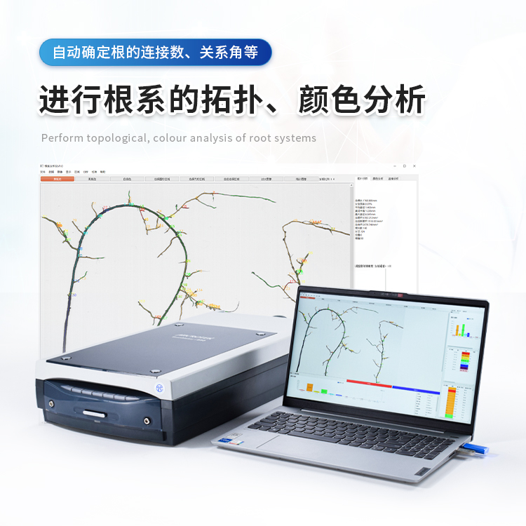 根系分析系统用于洗根后专业根系分析,还可以用于根盒培养植物的根系表型分析,可以分析根系长度、直径、面积、体积、根尖记数等,功能强大,操作简单,软件可分析植物根系的形态分析及根系的整体结构分布等,广泛运用于根系形态和构造研究。