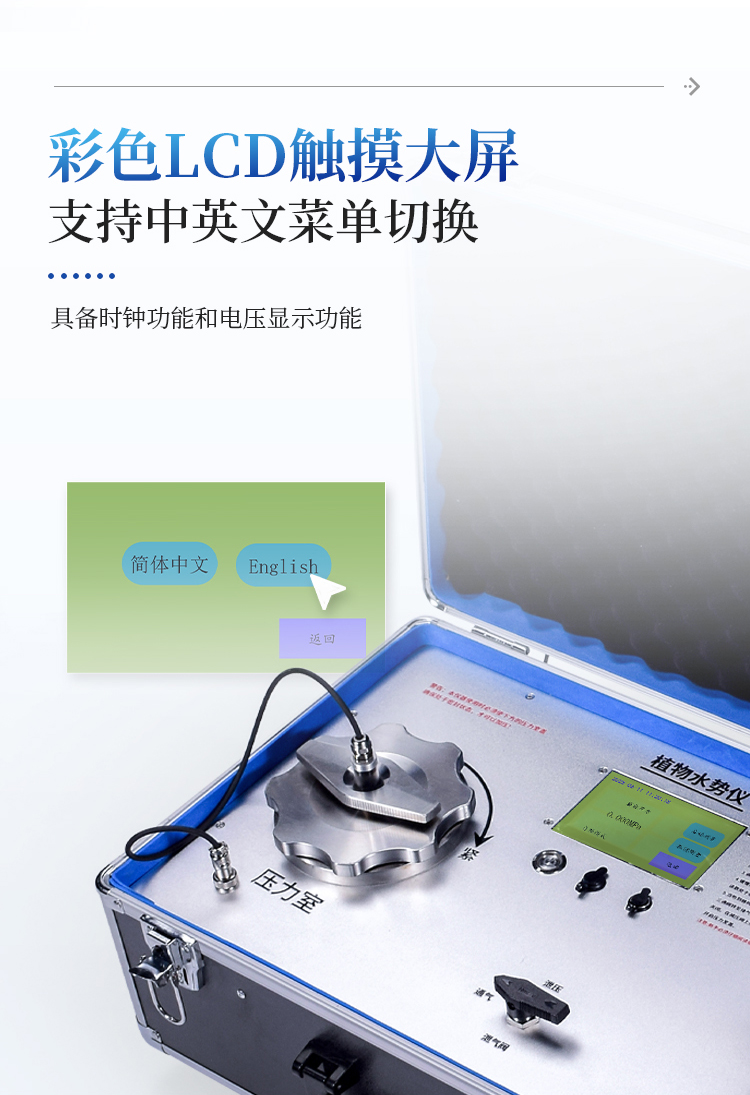 植物水势测定仪,是用于测定植物水分状况和它的组成成分及压去木质部位导管汁液提供成分分析用的一种分析仪器。可以利用此仪器研究植物的水分关系和植物与环境的关系。植物水势测定仪适用于植物生理学、生态学、农学、林学及牧草等的研究。据此指导作物及林草的合理用水和抗旱育种等工作,是从事农林教学和科研工作的重要仪器。该仪器操作简便,检测快速,同时适用于室内和室外及野外测量。