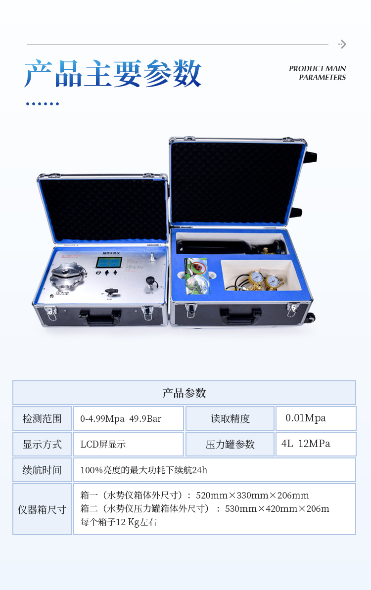 箱二(水势仪压力罐箱体外尺寸) :530mm×420mm×206mm