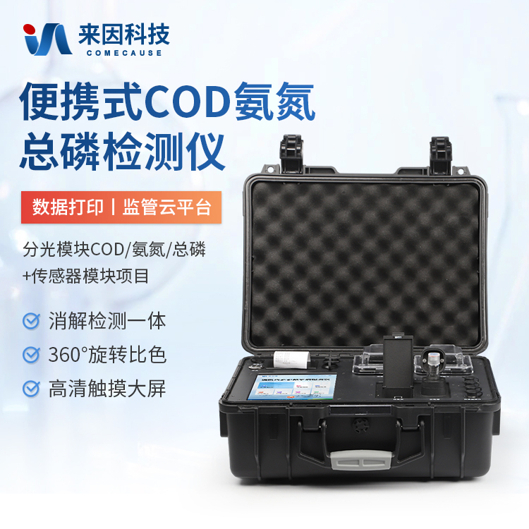简要描述: 便携式COD氨氮总磷测定仪便携一体式检测设备,内置大容量锂电池,可一机实现户外水样消解、测定;内置热敏打印机,支持自动、批量打印,可灵活选择、编辑打印内容,支持二维码打印;仪器具有WIFi无线、4G远传和RJ45有线联网功能,将数据上传;配备数据云平台,可接收仪器的检测数据,应用于线上数据存储、长短期动态分析。